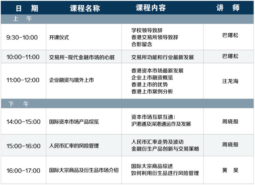 注:本次課程由浙江大學(xué)負(fù)責(zé)課程組織實(shí)施,香港交易所僅提供授課講師及內(nèi)容。香港交易所在本次課程中不收取任何講課費(fèi)用。