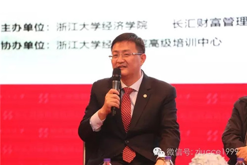 浙江大學(xué)經(jīng)濟(jì)學(xué)院黨委書(shū)記兼副院長(zhǎng)張榮祥,和長(zhǎng)匯財(cái)富管理有限公司總裁蔣文婷分別在論壇上致辭。浙江大學(xué)文科資深教授、浙江大學(xué)/浙江省金融研究院院長(zhǎng)史晉川,浙江省經(jīng)濟(jì)和信息化委員會(huì)副主任凌云,長(zhǎng)匯財(cái)富管理有限公司董事、副總裁葉棟,分別做主題演講。浙江大學(xué)經(jīng)濟(jì)學(xué)院高級(jí)培訓(xùn)中心主任葉宏偉、浙江元上資產(chǎn)合伙人陸成淵,參與圓桌論壇環(huán)節(jié)。