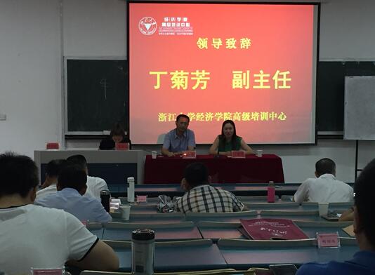 丁菊芳副主任首先對全體學(xué)員的到來,表示熱烈的歡迎。并就浙大的歷史、浙大五個(gè)校區(qū)以及在校師生情況,浙江大學(xué)經(jīng)濟(jì)學(xué)院高級培訓(xùn)中心“依托百年名校優(yōu)質(zhì)師資,服務(wù)社會”的辦學(xué)理念和發(fā)展前景作了介紹。最后祝愿各位學(xué)員們在浙大度過一段愉快的學(xué)習(xí)時(shí)光。