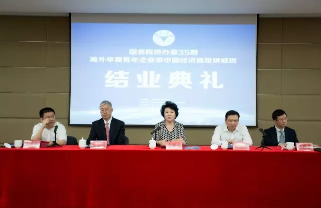 6月7日,國務院僑辦第35期海外華裔青年企業(yè)家中國經濟高級研修班舉行結業(yè)儀式。中國國務院僑辦主任裘援平、國僑辦經濟科技司負責人左志強、浙江省外僑辦主任金永輝、副主任王通林、浙江大學黨委副書記鄒曉東等出席了研修班結業(yè)儀式。國務院僑辦主任裘援平為學員頒發(fā)結業(yè)證書并作重要指示的講話。她寄語現(xiàn)場的海外華裔青年企業(yè)家要做好創(chuàng)新發(fā)展、建設海外僑社和促進中外友好三方面的帶頭人。