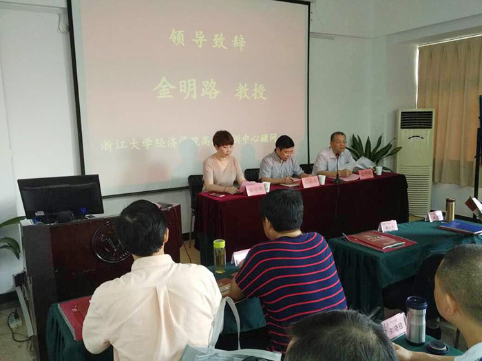 2016年06月19號,浙江大學(xué)—曲靖市辦公室系統(tǒng)干部綜合能力提升研修班,在浙江大學(xué)西溪校區(qū)開學(xué),曲靖市政府辦公室副秘書長、辦公室主任楊云光、浙江大學(xué)經(jīng)濟(jì)學(xué)院高培中心顧問金明路出席開學(xué)典禮并致辭。