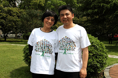 9日上午,同學(xué)們和老師們都穿上了組委會(huì)別出心裁制作的文化衫,衣服正中畫著一顆翠綠大樹,繁茂的樹上掛著全班53位同學(xué)的頭像和老師們的大頭照。這是將大樹比為母校,鮮花與果實(shí)喻作辛勤耕作的老師、飲水思源的學(xué)生,“桃李不言,下自成蹊”,表達(dá)了同學(xué)們對(duì)母校、母院的深情。經(jīng)濟(jì)學(xué)院校友分會(huì)秘書長宗曄也來到西溪校區(qū)的集合點(diǎn),帶來學(xué)校、學(xué)院對(duì)同學(xué)們的關(guān)愛之情,送給每一位同學(xué)學(xué)校的紀(jì)念徽章和帶有學(xué)院院標(biāo)的紀(jì)念品。