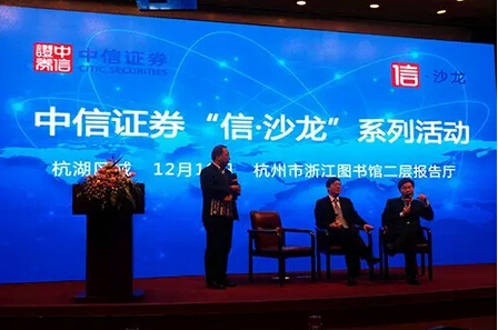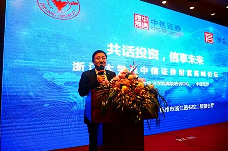 2015年12月19日上午,由浙江大學(xué)CCE中心和中信證券聯(lián)合舉辦的,以“共話投資·信享未來”為主題的“浙江大學(xué)——中信證券財(cái)富高峰論壇”,在浙江省圖書館隆重舉辦。浙江大學(xué)經(jīng)濟(jì)學(xué)院高級培訓(xùn)中心主任葉宏偉,和中信證券杭湖區(qū)域總經(jīng)理于瑞宇,分別在會(huì)上致辭。