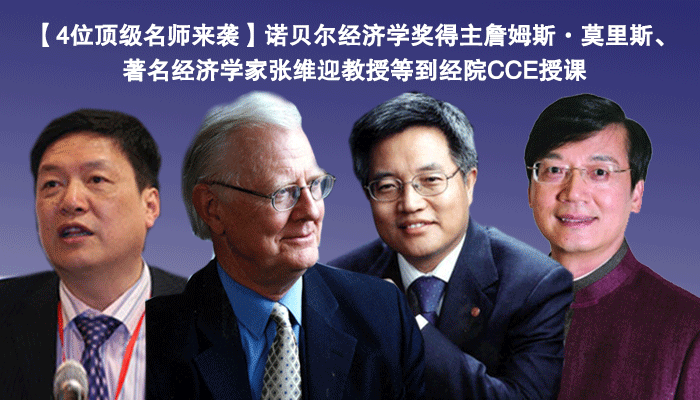 【4位頂級(jí)名師來襲】諾貝爾經(jīng)濟(jì)學(xué)獎(jiǎng)得主詹姆斯·莫里斯、著名經(jīng)濟(jì)學(xué)家張維迎教授等到經(jīng)院CCE授課