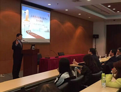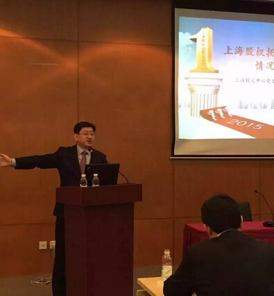 下午參觀考察上海股交中心,中心總經(jīng)理張?jiān)品逭诮榻B上海股交中心。