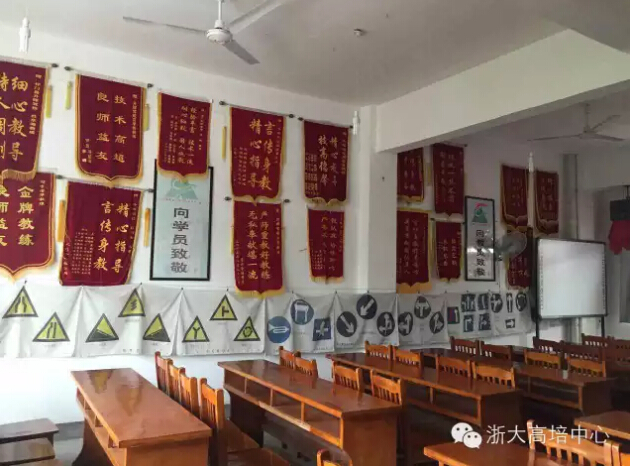 (升暉駕校滿墻的錦旗)