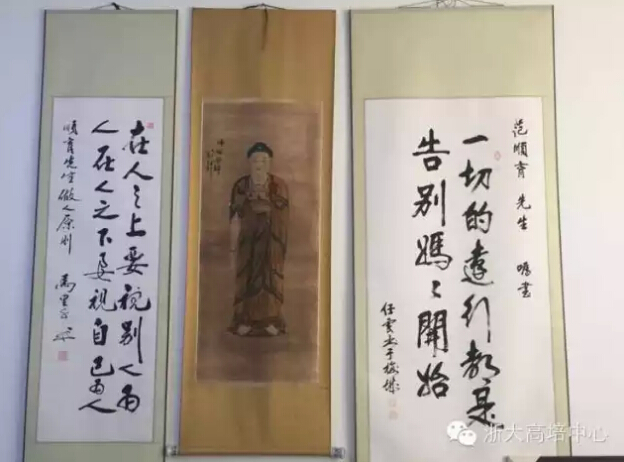 更讓人記憶深刻的是會議室內(nèi)兩幅范朝昇父親親筆題寫的字畫,據(jù)介紹那是范校長家的家訓(xùn)——“一切的遠(yuǎn)行都是告別媽媽開始”、“在人之上要視別人為人 在人之下要視自己為人”。前者告訴我們百善孝為先,路要自己走。后者傳達(dá)的則是一種自強(qiáng)自謙的精神。