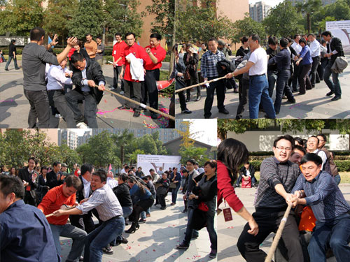 開幕式還嵌入了兩場(chǎng)表演賽和三場(chǎng)班級(jí)拔河友誼賽。氣勢(shì)恢宏的體育系專業(yè)武術(shù)隊(duì)武術(shù)表演贏得了陣陣掌聲喝彩聲。浙江大學(xué)經(jīng)濟(jì)學(xué)院12位女教師的美妙舞蹈又讓全場(chǎng)觀眾感嘆不已。運(yùn)動(dòng)的陽(yáng)剛與柔美淋漓盡致地表現(xiàn)出來(lái)。表演剛剛結(jié)束,班級(jí)拔河賽又拉開了陣勢(shì)。在拉拉隊(duì)的陣陣歡呼聲和助威聲中,浙江大學(xué)企業(yè)家經(jīng)理人高級(jí)研修班A222班與張掖脫產(chǎn)班A235班對(duì)決,A222班勝出。浙江大學(xué)企業(yè)家經(jīng)理人高級(jí)研修班AB232班與A219班對(duì)決,AB232班勝出。浙江大學(xué)企業(yè)家經(jīng)理人高級(jí)研修班A222班與AB232班對(duì)決,AB232班勝出。全場(chǎng)熱烈高漲的氛圍把開幕式推向了高潮!