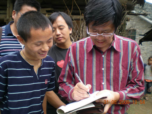 我們走訪了貧困優(yōu)秀學(xué)生吳才祥,他的夢(mèng)想是想考取清華、北大,因?yàn)檫@樣的話他就不用擔(dān)心學(xué)費(fèi)的問(wèn)題了。浙江佳境規(guī)劃設(shè)計(jì)院副院長(zhǎng)許寶龍對(duì)貧困生他說(shuō):“并不是一定要考上清華、北大才會(huì)有出息,你看我們一行人中哪一位是清華或北大畢業(yè)的呢,都不是。你看小吳老師,她也不是清華、北大畢業(yè)的,照樣在浙江大學(xué)工作,并且她家里的情況和你差不多,昨天我們都去過(guò)了,然后她并不因?yàn)榧彝ヘ毨Ф艞壸约旱睦硐?,?duì)工作和生活都抱著的非常積極的態(tài)度,不斷的學(xué)習(xí)和總結(jié)經(jīng)驗(yàn),培養(yǎng)自己的綜合能力,我們的小吳老師(吳秀琴)她就是的你最好的榜樣。你到了學(xué)校以后,要勤工儉學(xué),這是鍛煉自己綜合能力的好機(jī)會(huì)。”許院長(zhǎng)深長(zhǎng)的話語(yǔ)讓吳才祥有了深深的思考,同時(shí)也感動(dòng)了周?chē)娜恕?/P>